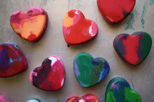 У нас еще есть форма из Икеи с сердечками. Надо только еще мелков наломать.